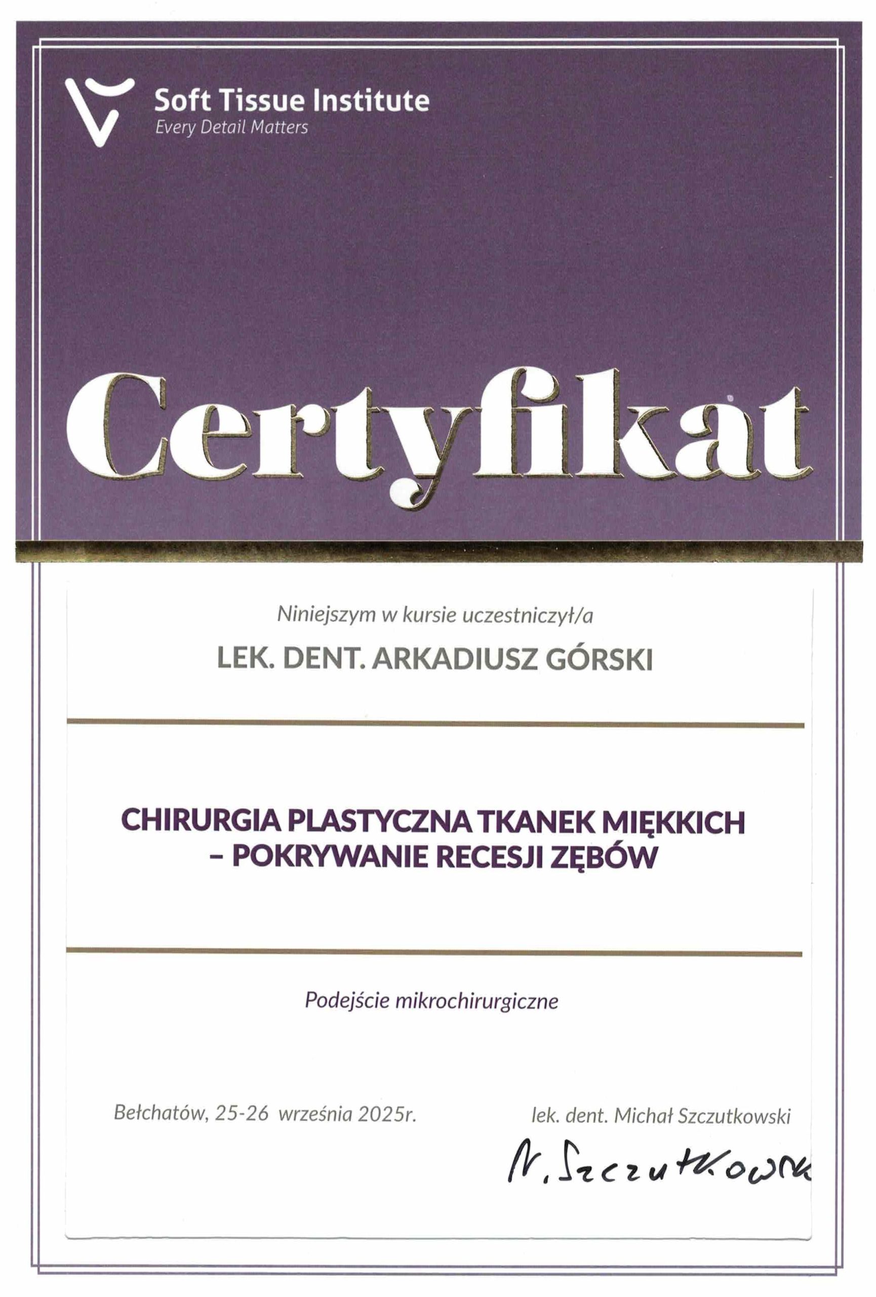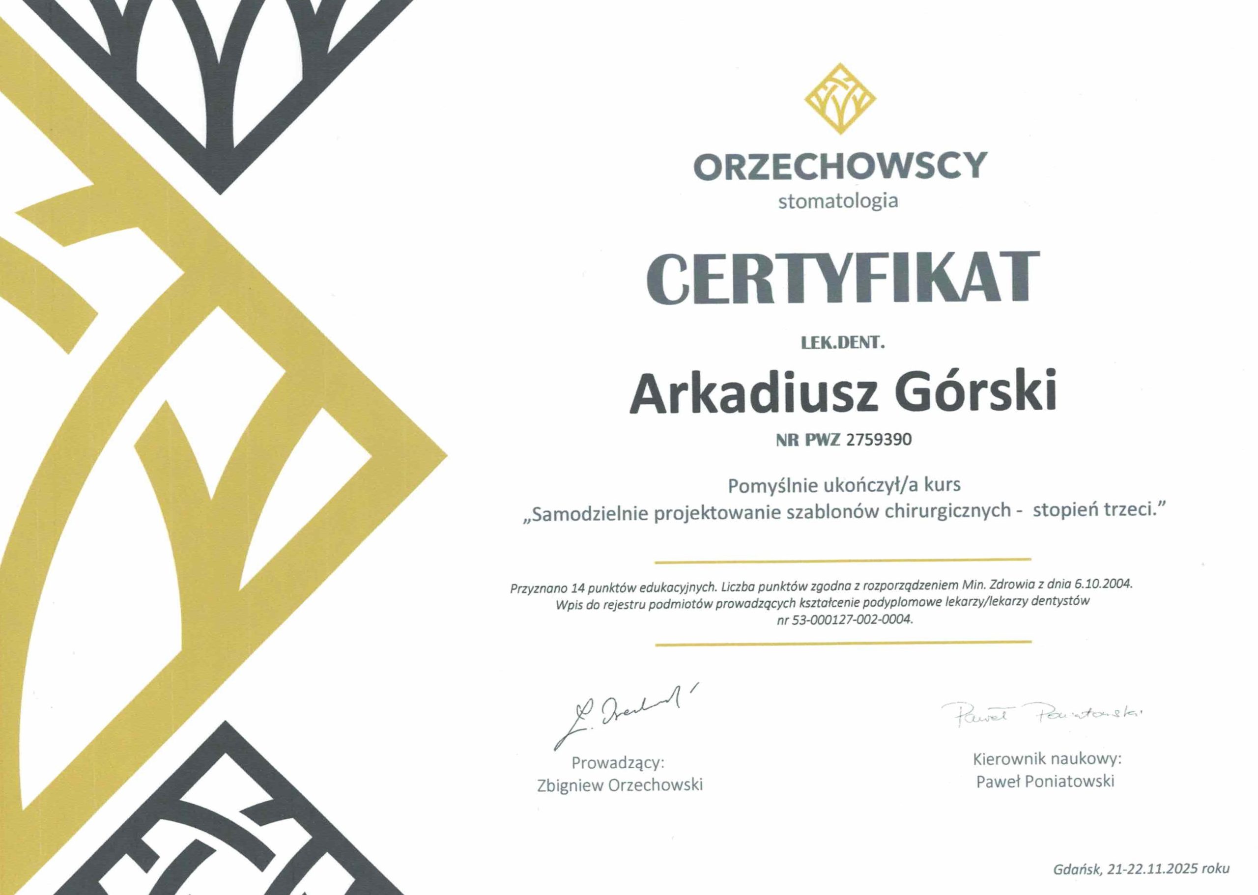 lek. dent. specjalista chirurgii stomatologicznej Arkadiusz Górski